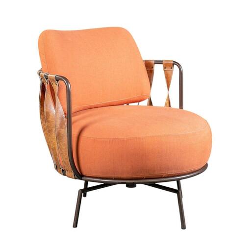 Poltrona Évora Ferro e Couro Marrom (Futton Estofada Tecido Terracota)