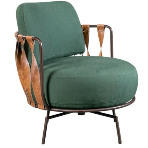 Poltrona Évora Ferro e Couro Marrom (Futton estofado Tecido Verde)